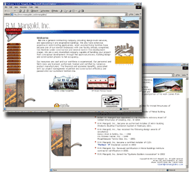 R.M. Mangold is a general contracting company providing design-build services, and specializing in pre-engineered buildings, Retro-Roofing, and a number of other construction related services. This site contains a large amount of Macromedia Flash, and graphic Design for user interactivity.